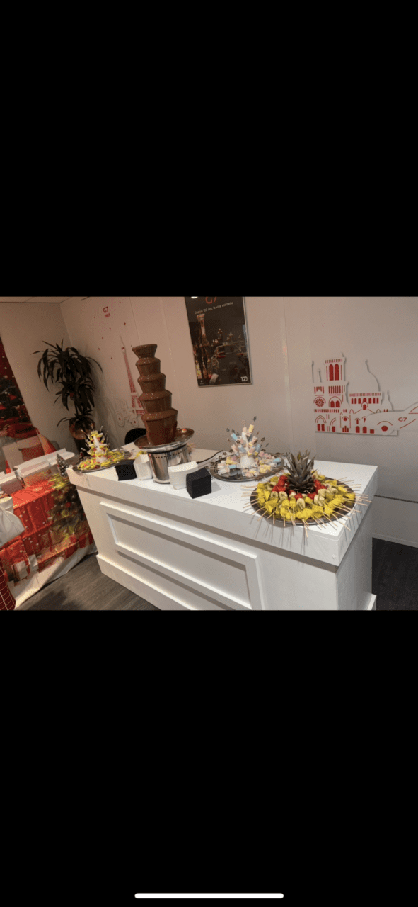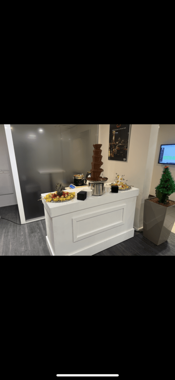 Que ce soit pour un mariage, un anniversaire, un baptême ou une soirée d’entreprise, notre fontaine à chocolat de 5 étages est la pièce maîtresse idéale. Son design élégant en acier inoxydable et sa cascade fluide de chocolat fondu garantissent un « effet waouh » visuel et gustatif.